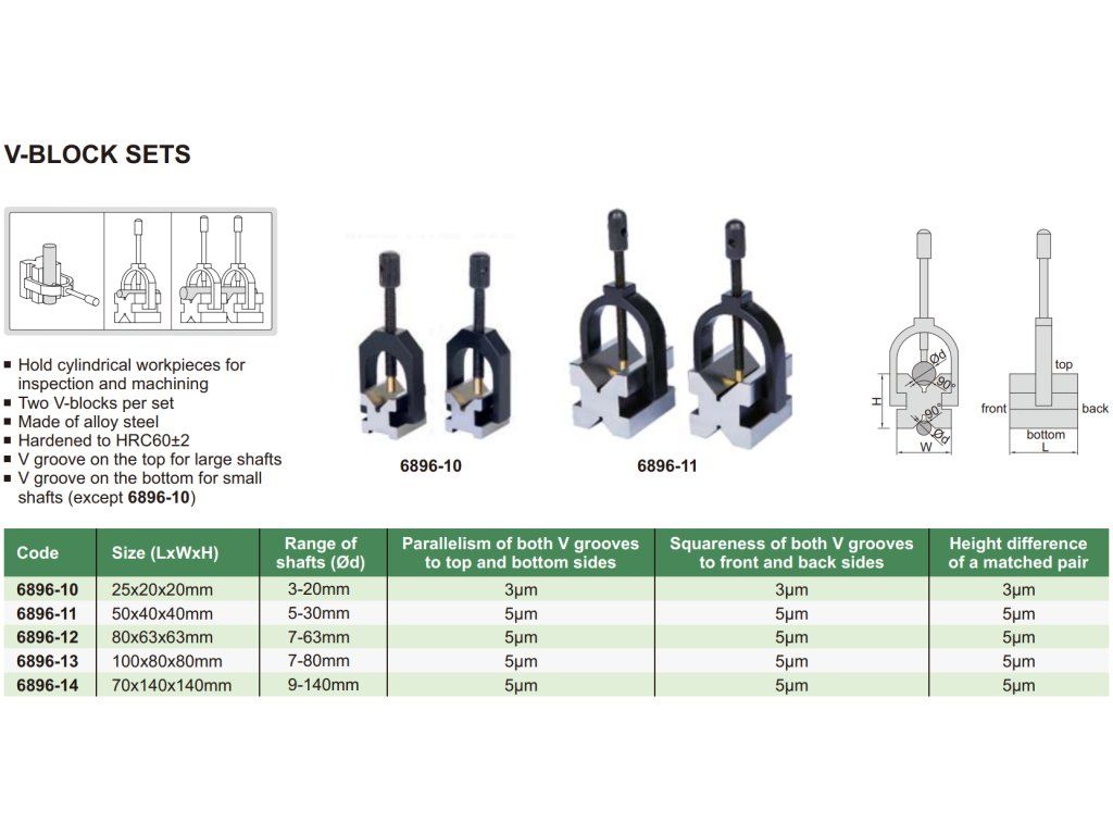 Set de două prisme de la Insize, din oțel aliat, cu duritate de HRC60±2. Prismele sunt utilizate pentru a fixa piese cilindrice, cu scopul de a fi măsurate sau prelucrate.