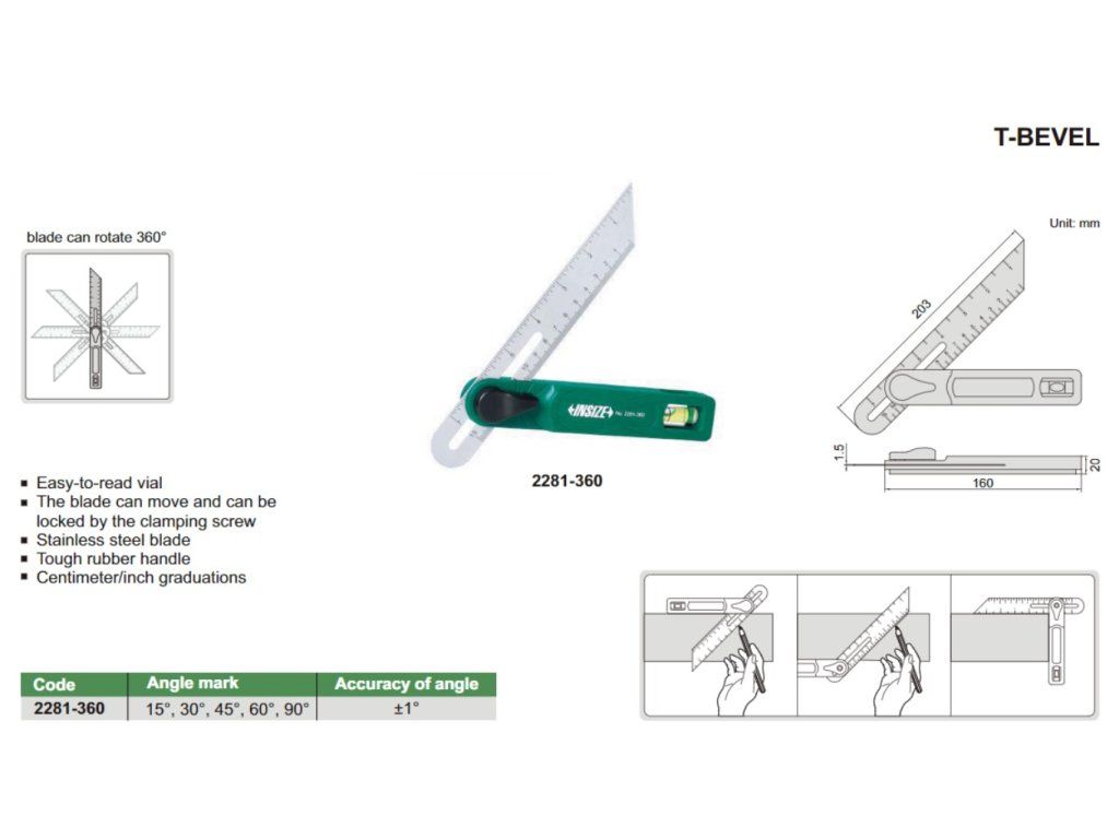 Echer reglabil de la INSIZE, lamă reglabilă la 360°.