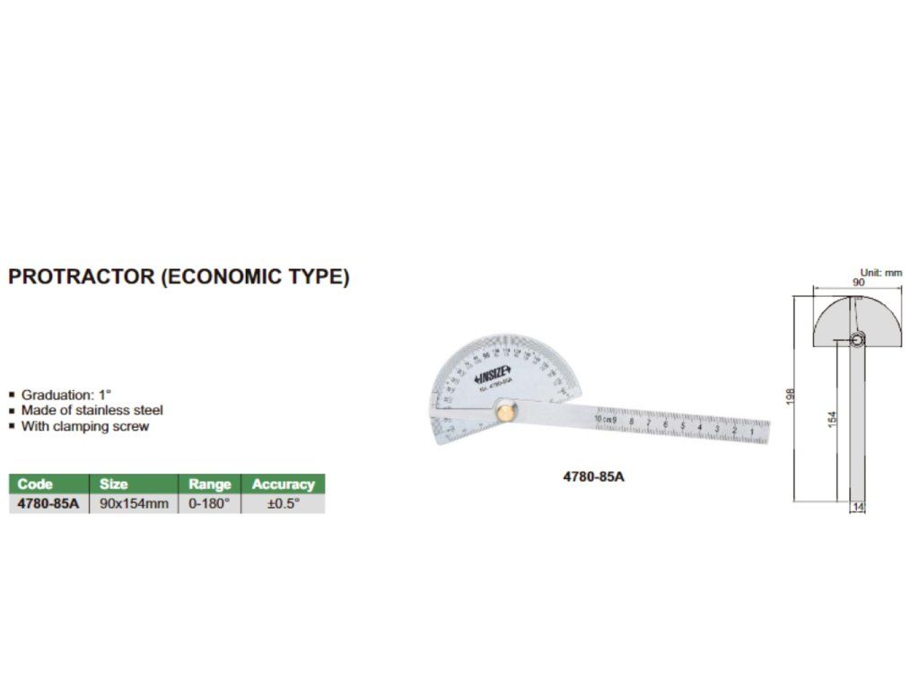 Raportor 0-180°/1°, 90x154 mm INSIZE