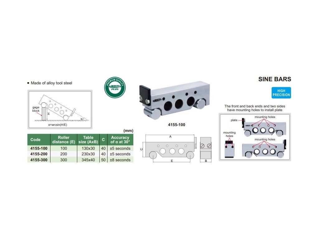 Riglă de sinus 200 mm iNSIZE