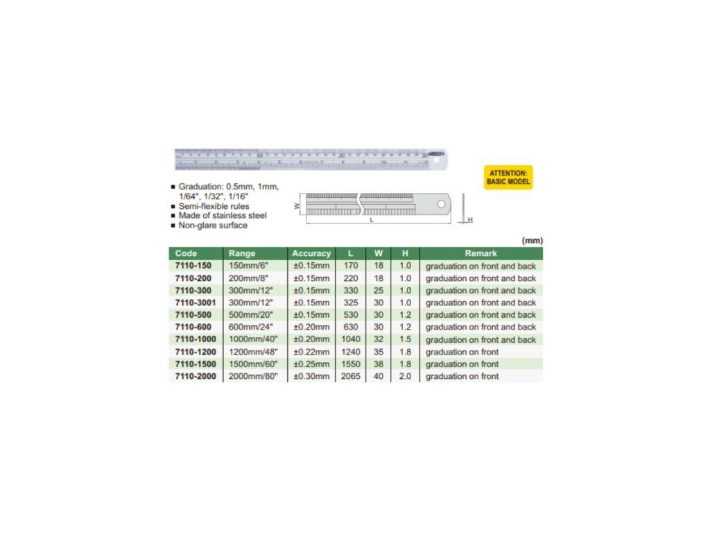Riglă semiflexibilă din oțel inoxidabil de la Insize, cu suprafață mată. Interval de 300 mm, mai multe gradații, variantă îngustă și lungă.