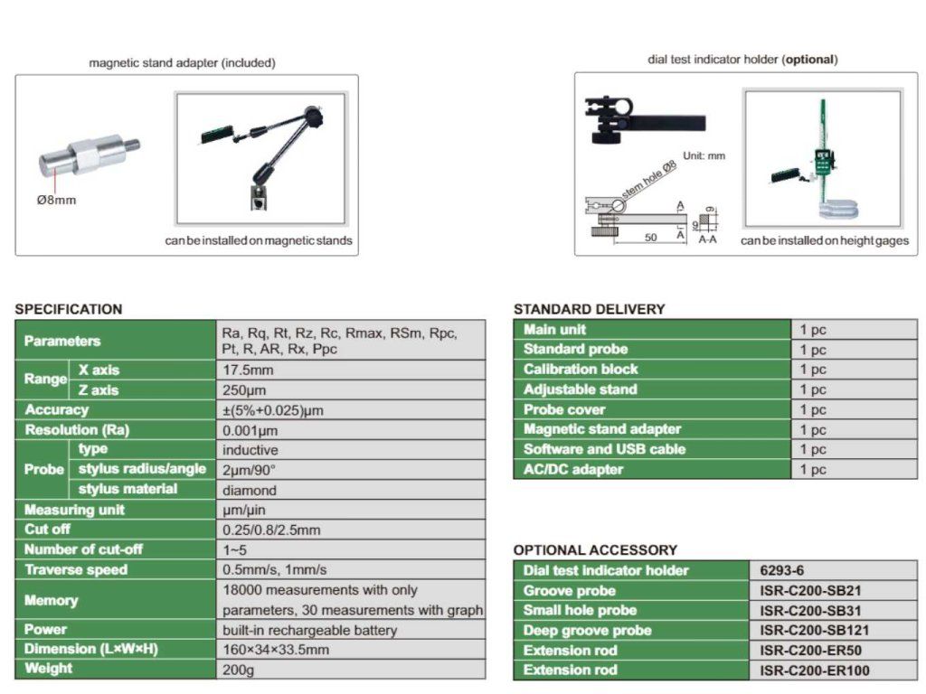 Rugozimetru fiabil ISR-C200 de la INSIZE din seria PLUS, măsoară 13 parametri de rugozitate și se poate conecta wireless la telefon mobil cu Android, tabletă sau PC. Posibilitate de salvare a datelor cu grafic.