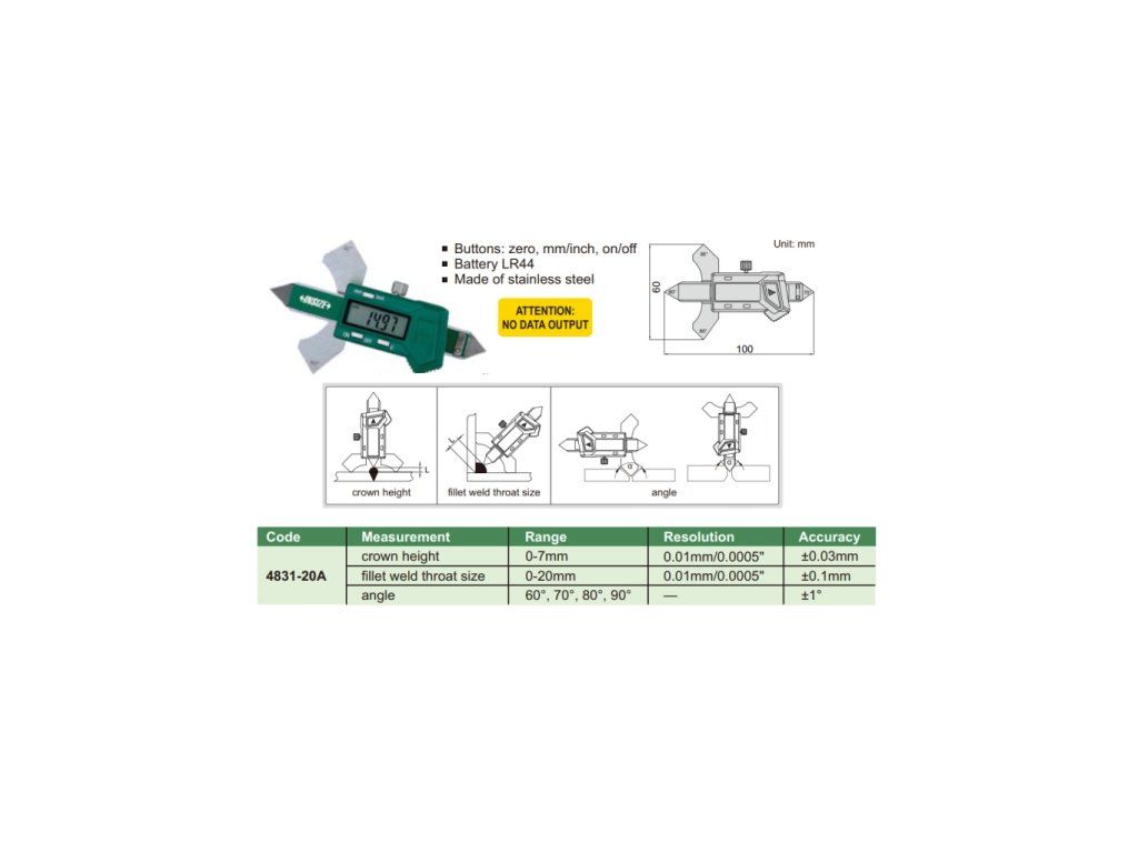 Șablon digital pentru sudură de la INSIZE, fără port ieșire date.