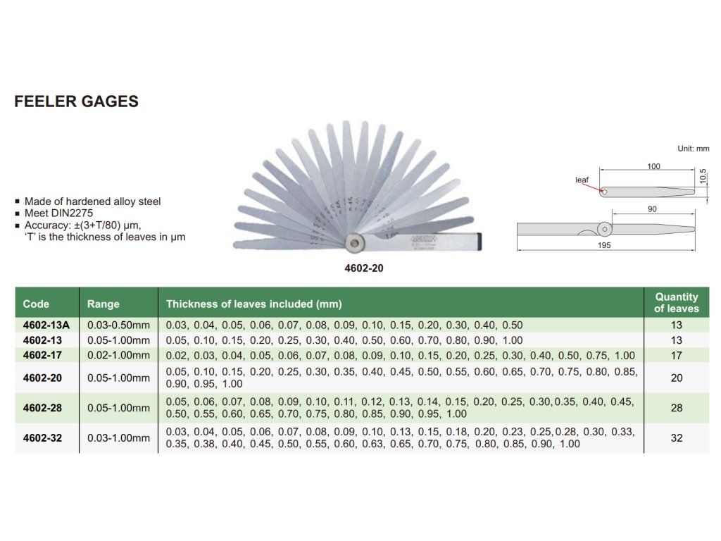 Set lere de grosime de la Insize, cu interval 0,05-1 mm și precizie 3+T/80 μm, conform DIN2275.