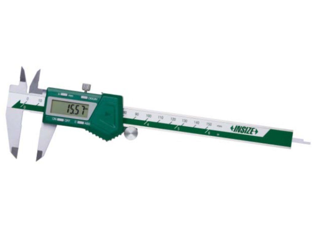 Șubler standard digital de la Insize, cu sistem ABSOLUTE, interval de măsurare 0-150 mm și rezoluție 0,01 mm. Lungimea ciocurilor inferioare este de 40 mm, cu port ieșire date, rolă de avans și tijă pentru măsurarea adâncimilor.