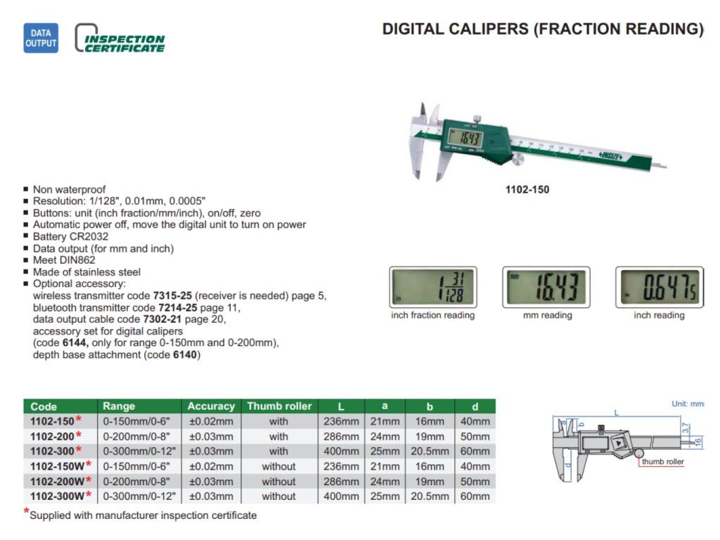 Șubler digital 0-150/0,01 mm, afișare sub formă de fracție INSIZE