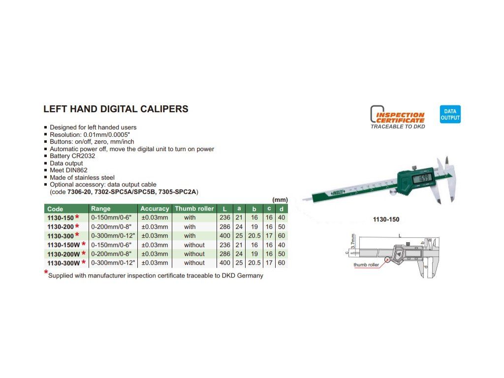 Șubler digital 150/0,01 mm cu rolă de avans, pentru utilizare cu mâna stângă INSIZE