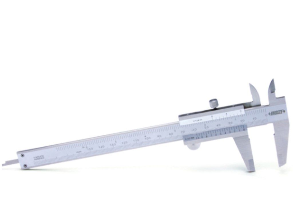 Șubler mecanic de la Insize pentru utilizare cu mâna stângă, fabricat din oțel inoxidabil, cu interval 0-150 mm/0-6″ și gradație 0,02 mm/0,001".