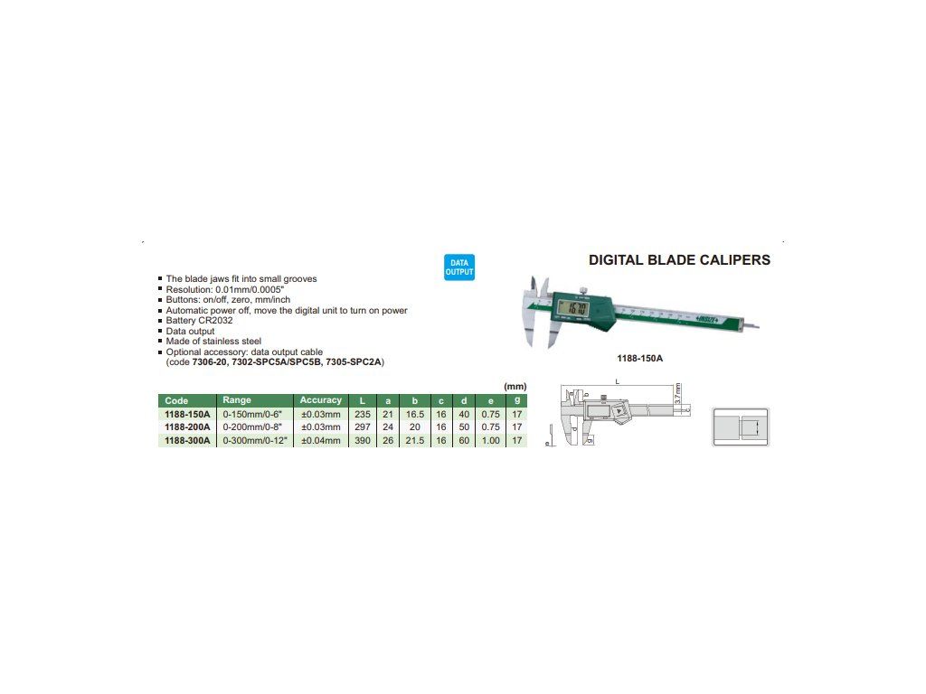 Șubler digital cu interval 0-200/0,01 mm de la INSIZE cu ciocuri inferioare subțiri cu dimensiuni 50/0,85 mm pentru măsurarea dimensiunilor canelurilor mici, cu port ieșire date și tijă de adâncime.