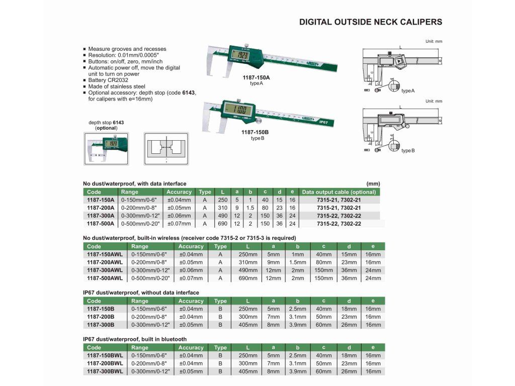 Șubler digital cu interval 0-200/0,01 mm de la INSIZE cu ciocuri inferioare de exterior cu dimensiuni 80 mm pentru măsurarea dimensiunilor canelurilor și orificiilor exterioare, cu port ieșire date.