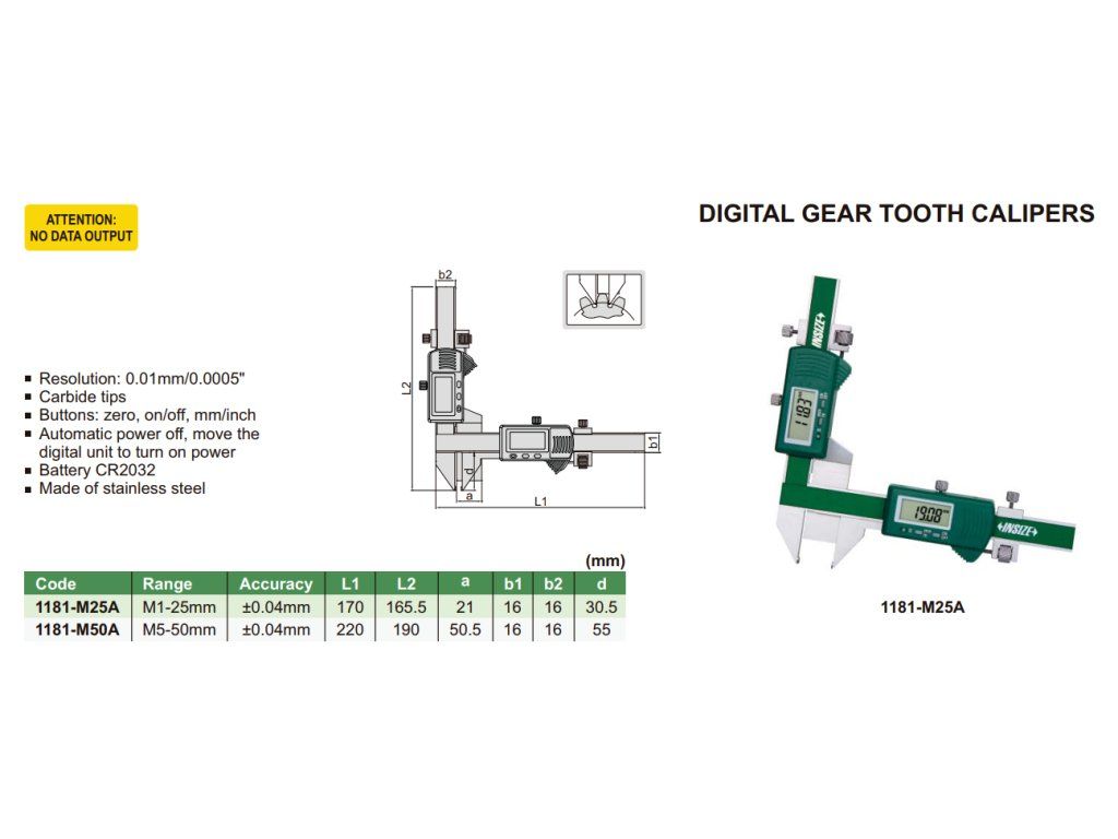 Șubler digital M1-25/0,01 mm pentru roți dințate INSIZE