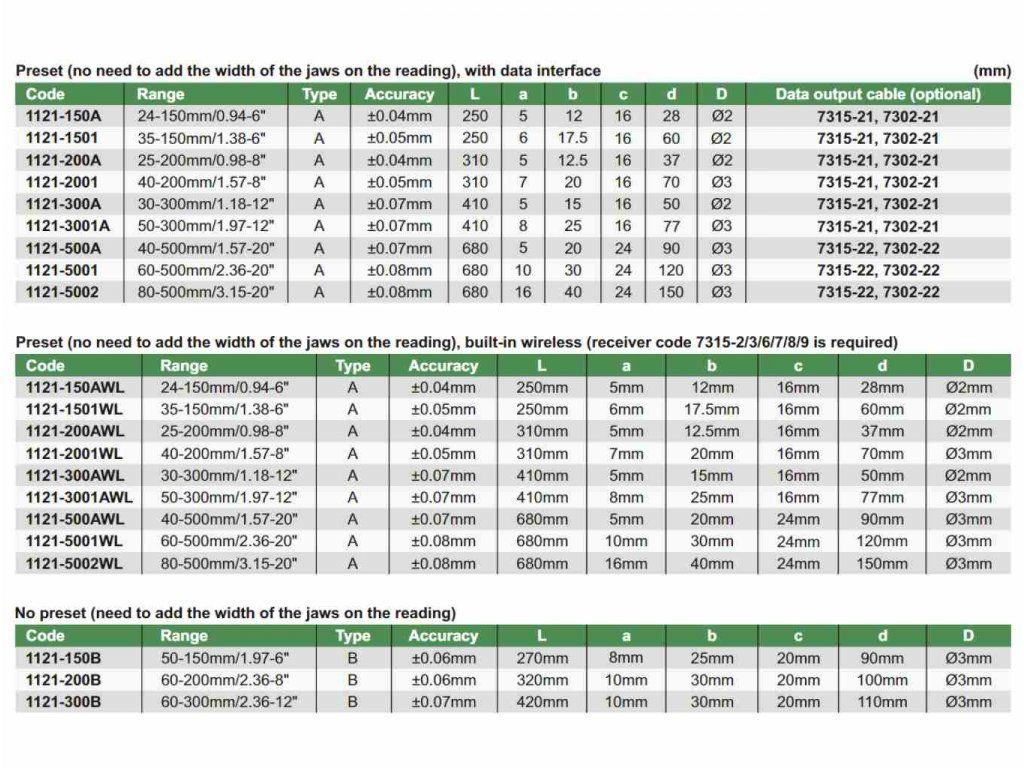 - Ciocuri inferioare cu lungime de 60 mm pentru măsurări interioare prevăzute cu vârfuri rotunde