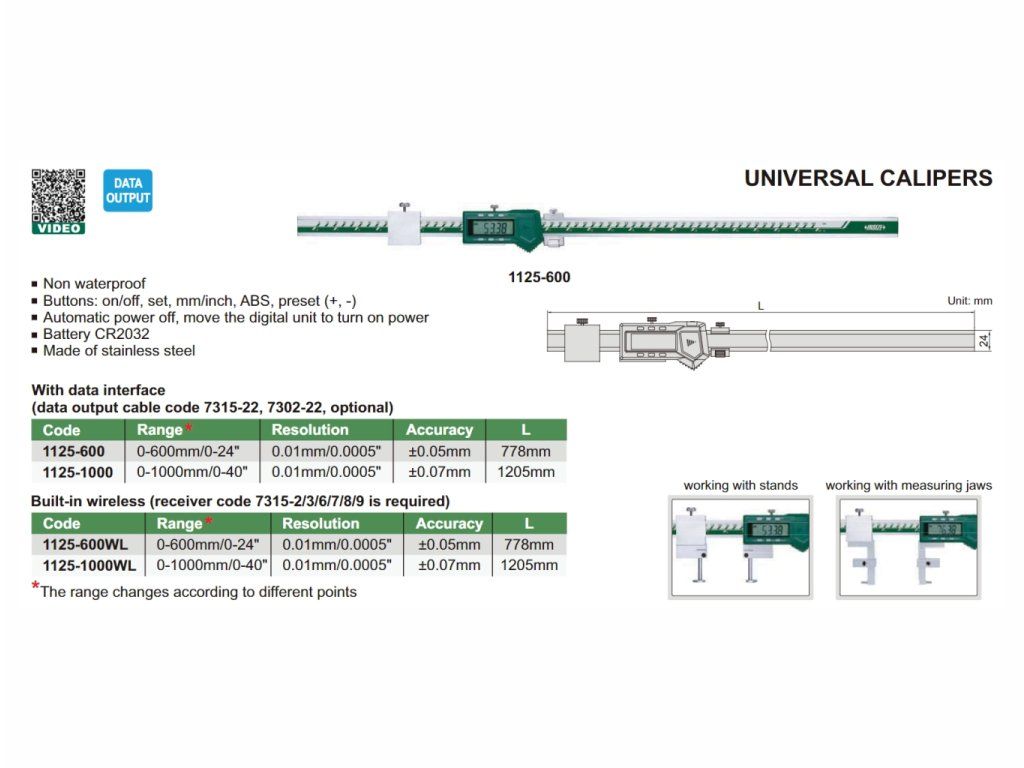 Șubler digital universal cu interval de măsurare 0-600 mm de la INSIZE. Fabricat din oțel inoxidabil.Transfer de date wireless.