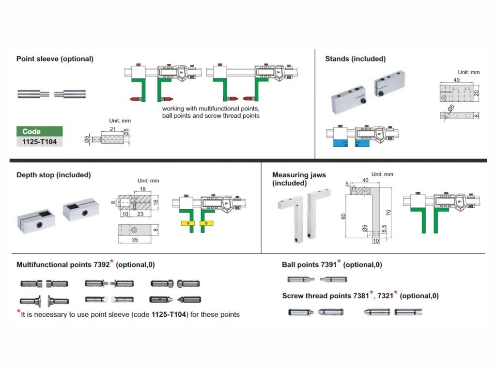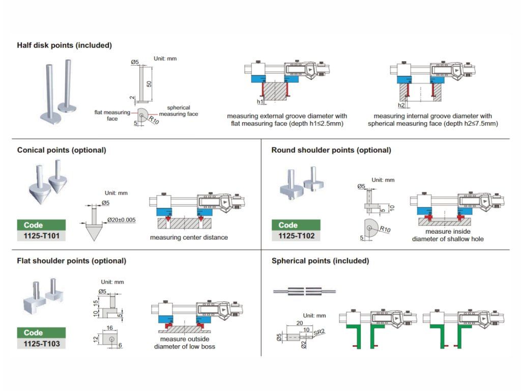 - Vârf sferic pentru măsurarea diametrului interior al canelurii
