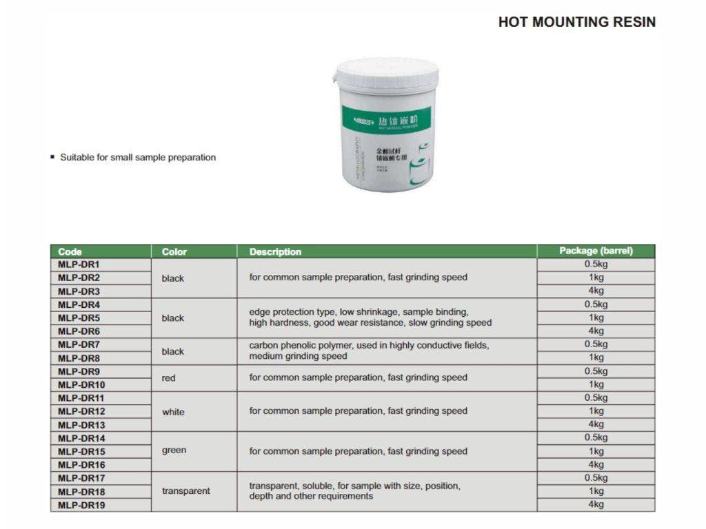 Rășină de montaj de la INSIZE pentru pregătirea probelor mici.