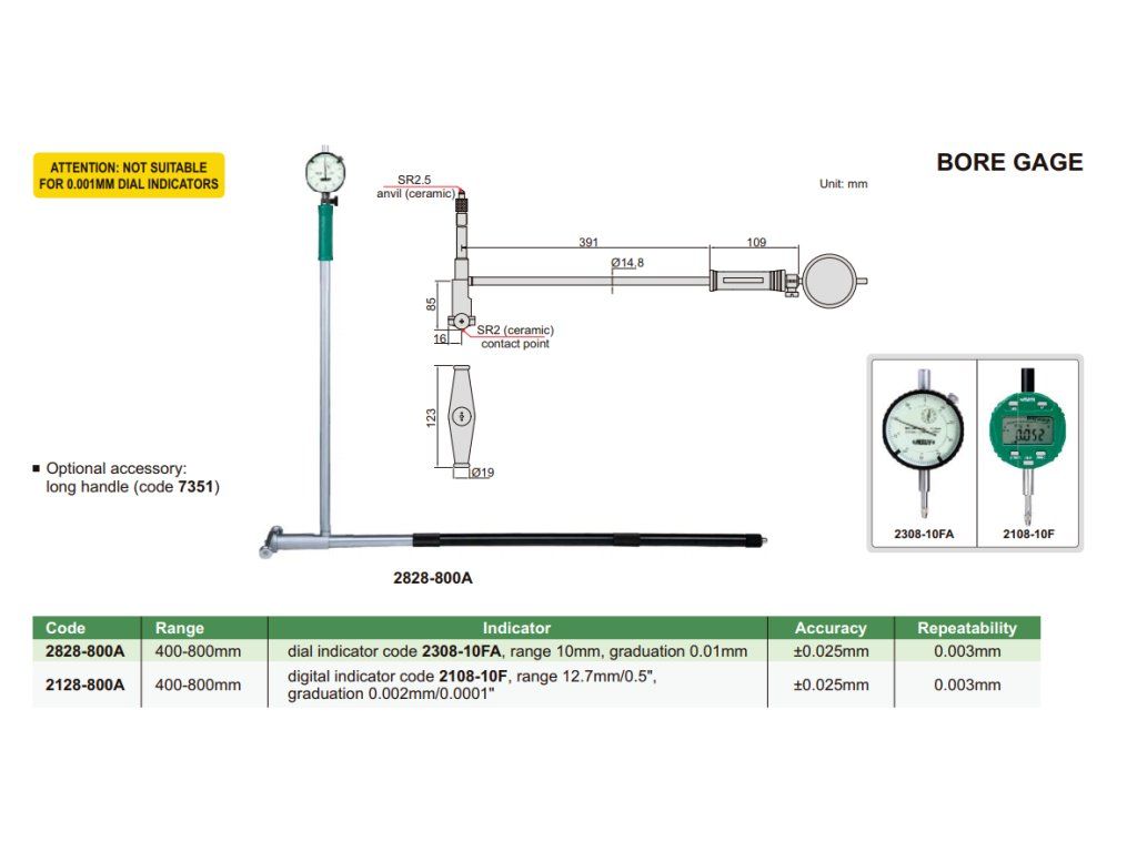 Trusă alezaj cu ceas comparator mecanic 400-800/10/0,01 mm INSIZE